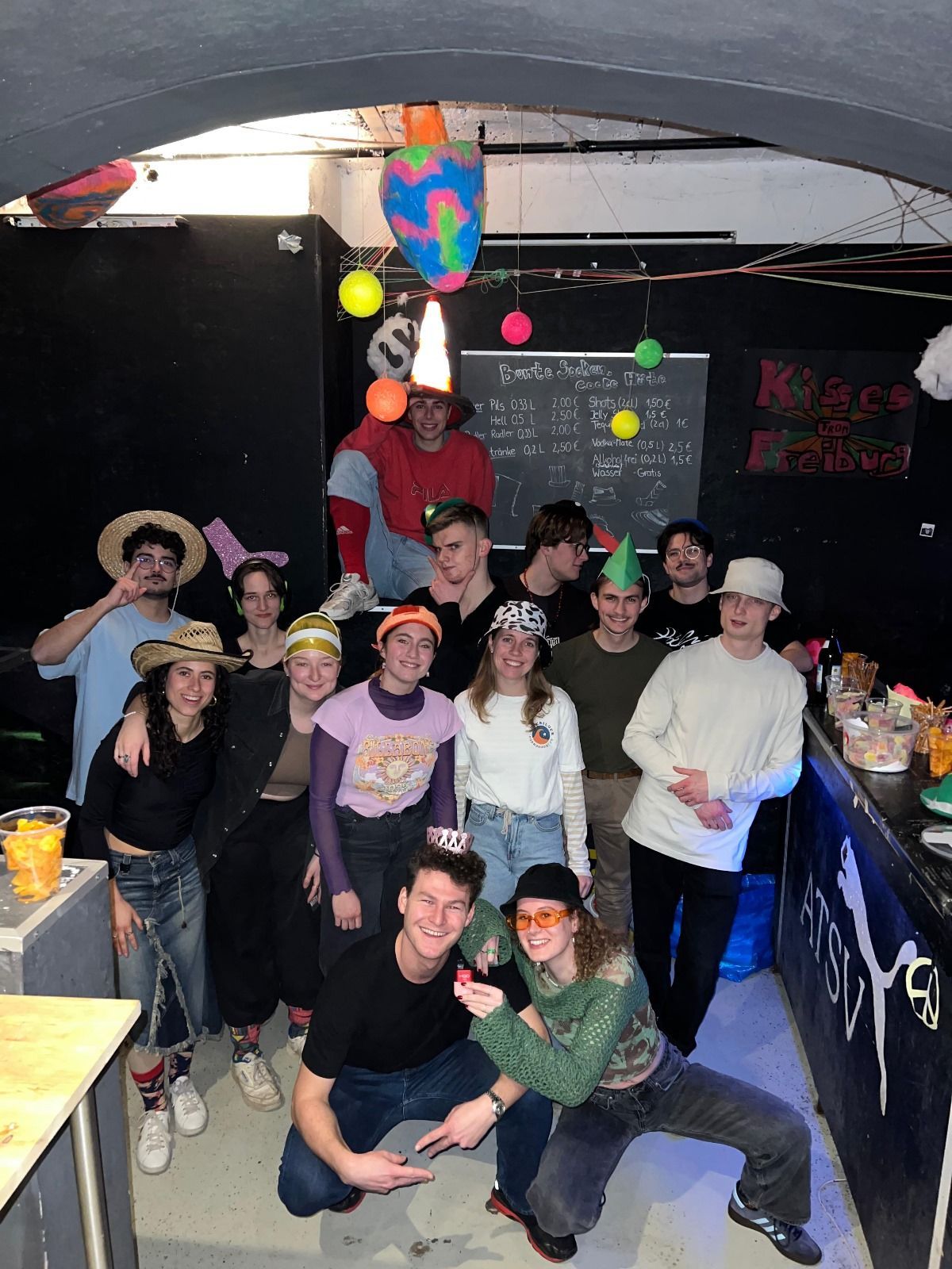Nachdem wir alle 2024 mit Weihnachten und Silvester ausklingen ließen, ließen wir das neue Jahr am 10.1 mit der diesjährigen ersten Hausparty so richtig durchstarten. Dabei stand das Motto „Bunte Socken, coole Hüte“ auf der Tagesordnung, womit wir unsere Kreativität natürlich freien Lauf lassen konnten – und das haben wir voll ausgeschöpft: Die Wände wurden mit bunten Pappsocken dekoriert, außerdem wurden leuchtend farbige Hüte an den unterschiedlichsten Stellen in Partykeller und Treppenhaus angebracht. Kombiniert mit der Deko ehemaliger Hauspartys wurde unser Keller dann richtig gemütlich. Das absolute Highlight war aber natürlich nicht die Deko, sondern die Verkleidungen der Aktiven und Gäste: Durch das sehr offen gewählte Motto entstanden die vielseitigsten und verrücktesten Outfits, von einem orangenen Warnkegel als Hut, der an die Vogelscheuche aus „Der Zauberer von Oz“ erinnert, über knallige Stroh- und Filzhüte, bis hin zu Socken in allen erdenklichen Farben und Facetten. Auch die Party selbst war ein voller Erfolg, denn während wir zunächst einen langsamen Start hinlegten, füllte sich der Partykeller um 0 Uhr exponentiell, bestärkt durch unsere gute, alte 2000er Musik. Später übernahm dann die Technofraktion das Kommando, und lies die Nacht mit futuristischen Beats auslaufen. Gleichzeitig wurden im Hinterraum des Partykellers natürlich bis zum Morgengrauen fleißig Bierpong und andere Spiele gespielt. Bis ca. 6 Uhr tanzten unsere strahlenden Gäste dann, und verließen schlussendlich unsere Hausparty mit einem Grinsen, dass ungefähr so breit war wie die Flügel eines ausgewachsenen Albatros. Einmal mehr haben wir gezeigt, dass „Langeweile“ bei der ATSV Karlsruhe ein Fremdwort ist. Wir freuen uns auf die nächste Party!