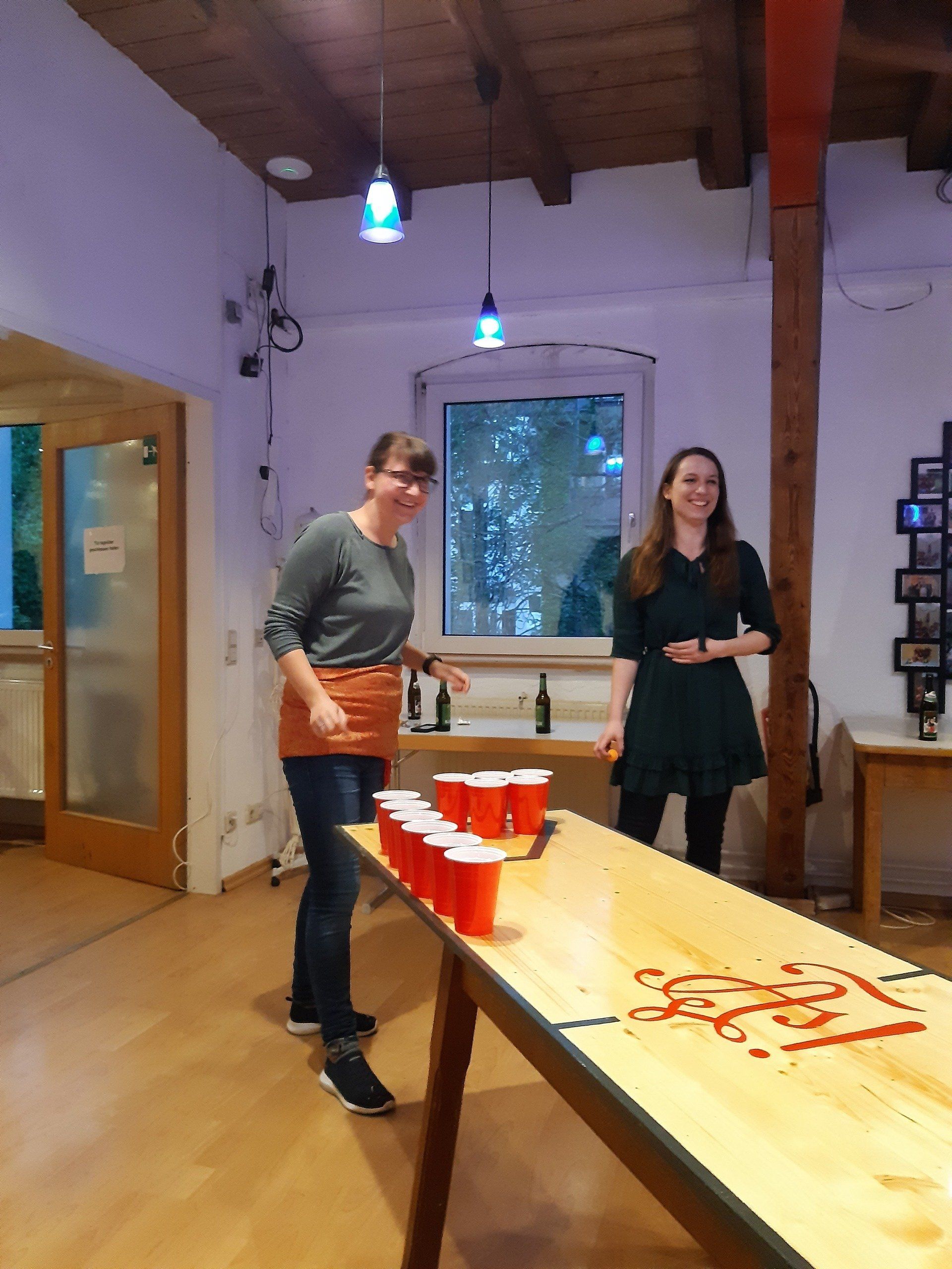 Ausnahmsweise ganz und gar nicht traditionell, hat unser Festwart Lennart an diesem Freitag für uns ein internes Bierpongturnier organisiert. Zunächst wurde von der Gruppe über die offziellen ATSV-Regeln abgestimmt, die sehr bald auch auf einer entsprechenden Tafel verewigt werden.