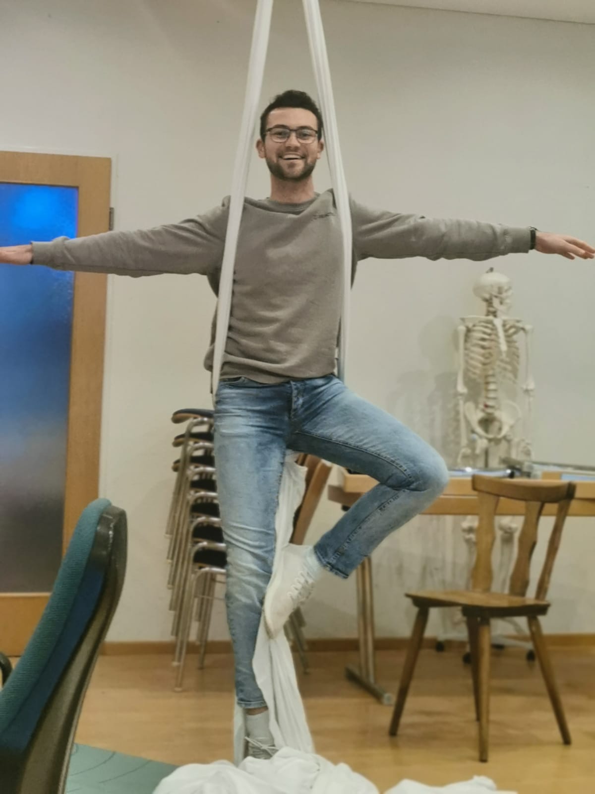 Der Semesterantritt begann mit einer schönen Runde auf unserer (damals noch) brandneuen Terrasse, die mittlerweile schon oft benutzt wurde. Das Wetter hat zum Glück gut mitgemacht, wenn es auch leicht kühl war, der Konventraum wurde nämlich zu dem Zeitpunkt vom Hausverein genutzt. Dadurch bekamen wir regelmäßige Neuigkeiten von unserem aktuellen Hauswart Noah, der sich stark für das Projekt eine Sauna ins Haus zu bringen engagiert hat. Es sieht auch sehr gut aus: sie müsste in eine Ecke des Kraftraumes kommen, der dafür noch etwas umgeräumt werden muss. Nach dem Fahne hissen und anstoßen ging es Richtung Schlosspark: dort bekamen wir einen auf uns ausgelegten Yoga Kurs. Dadurch konnten wir feststellen, dass etwas mehr dehnen und Koordination-üben unserer Sportpraxis gut tun würden, wenn es auch manchen schon sehr schön gelungen ist. Dazu kamen Gruppen-Übungen, zu zweit, zu dritt, und sogar mit der ganzen Runde, erstaunlicherweise sind wir dabei nicht alle umgefallen. Danach kam ein entspannender Ausklang, zu dem die umstehende Bäume und riesige Wiese des noch ziemlich stillen Schlossparks beigetrugen haben. Es sorgte auf jeden Fall für viel Spaß und war eine interessante Herausforderung!