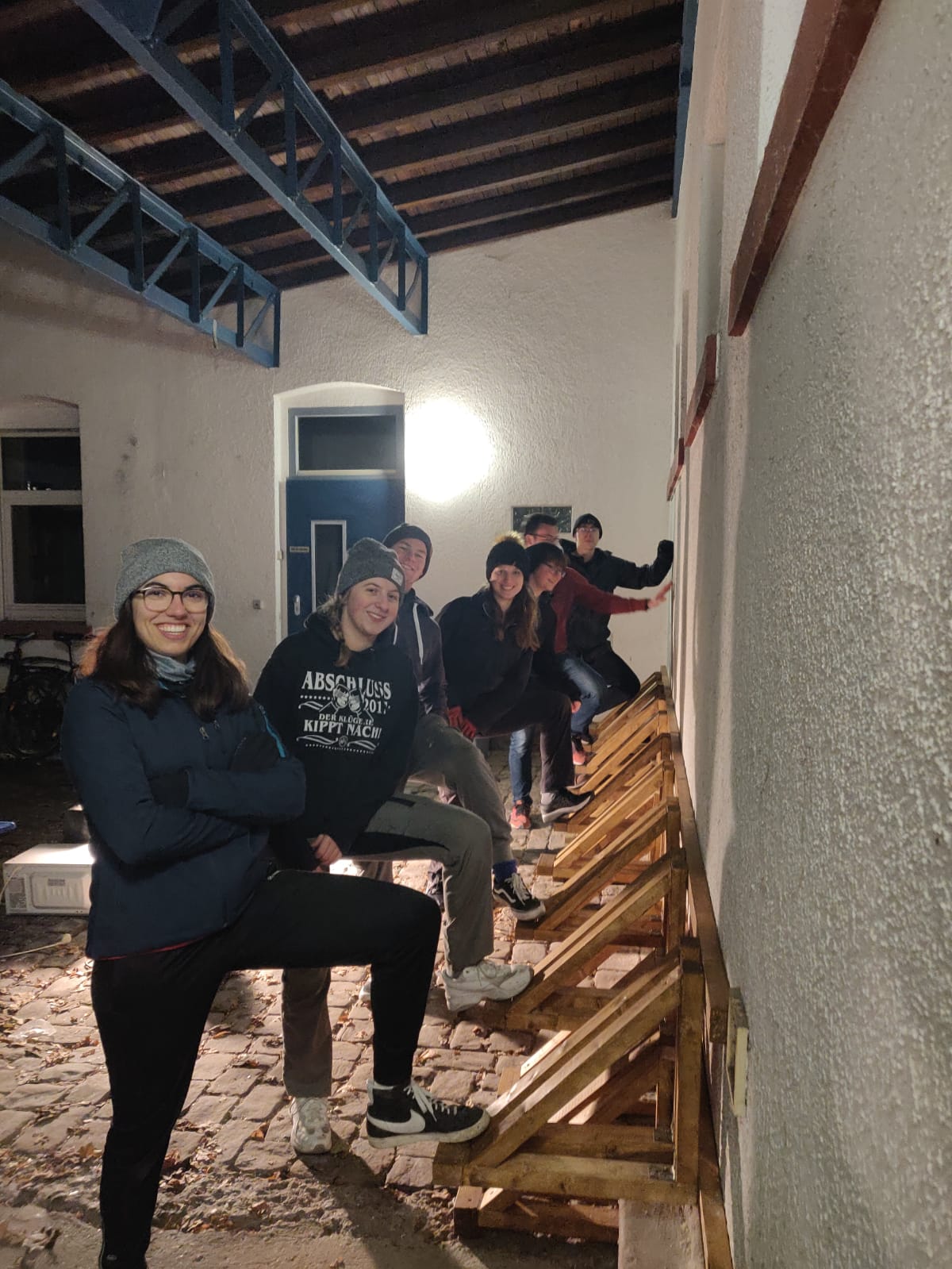 Das diesjährige Fuxenprojekt, trotz Corona mit vollem Einsatz: Die angehenden Fuxen scheuten weder das eiskalte Wetter, noch lange Planungsstunden um ihre Idee zu verwirklichen. Unter der Führung von Katrin v. Spinelli wurde gemeinsam ein neuer Fahrradständer aus Holz gebaut. Ein Tag voller Tee, Schrauben und Lack endete schließlich in der erfolgreichen Fertigstellung des Projektes, das auf dem Haus und auch bei den AH gut anzukommen schien. Von nun an dürfen die Fahrräder endlich geordnet hinter dem Nebenbau stehen...